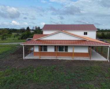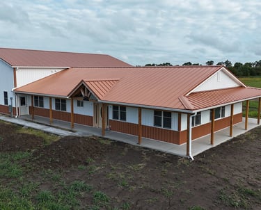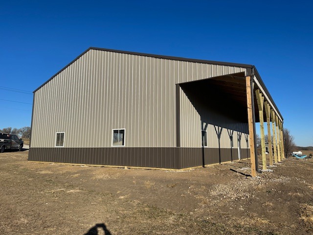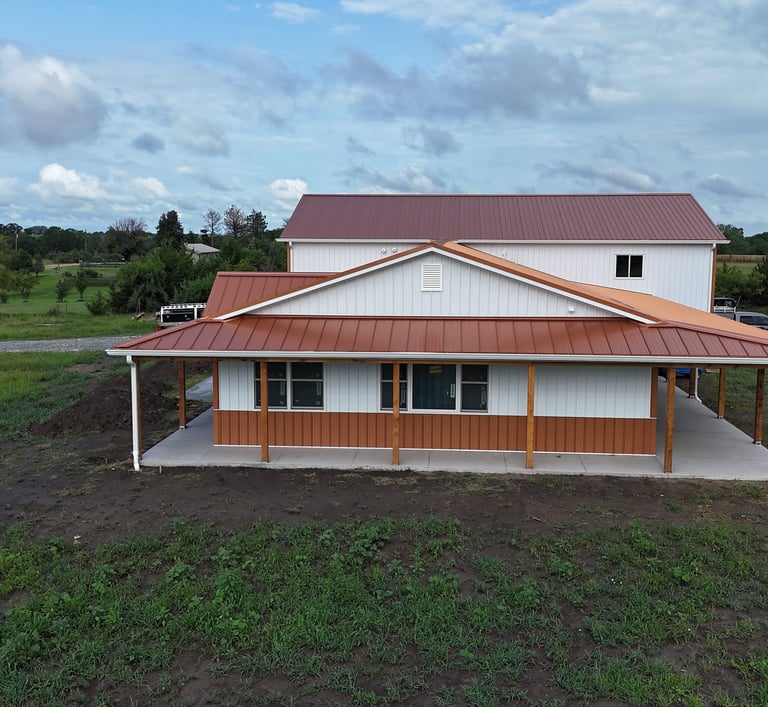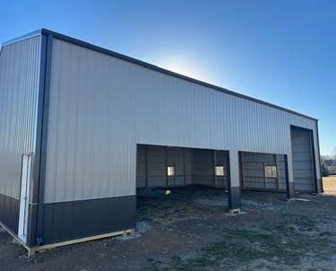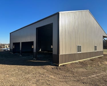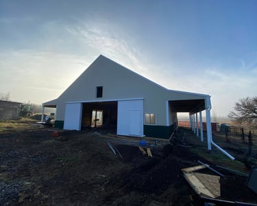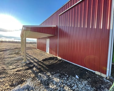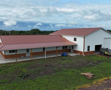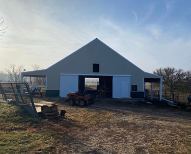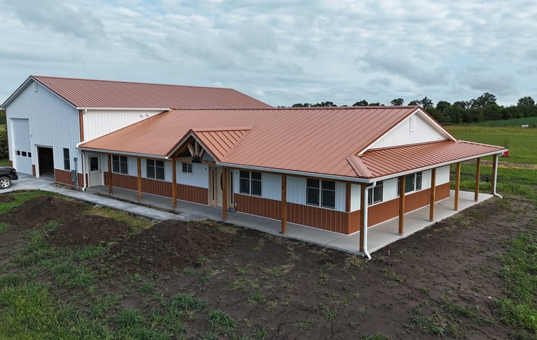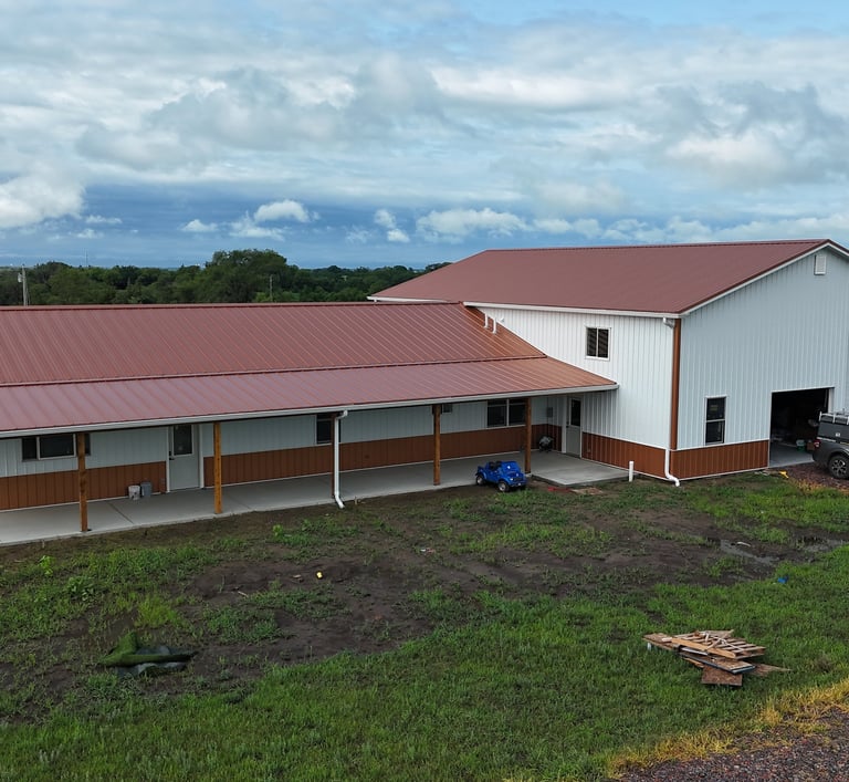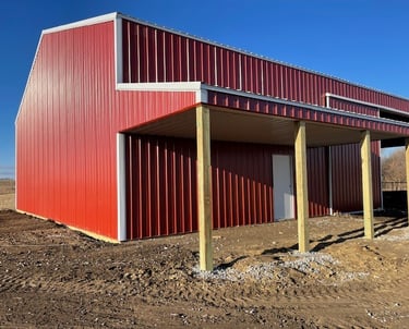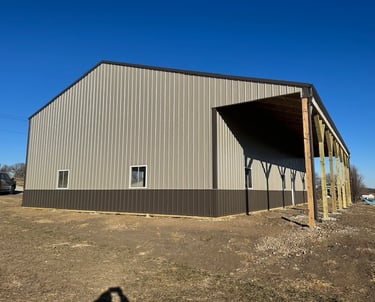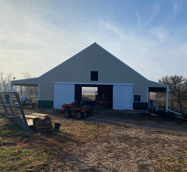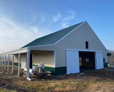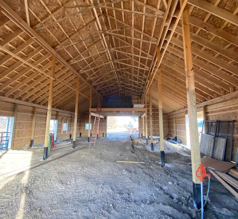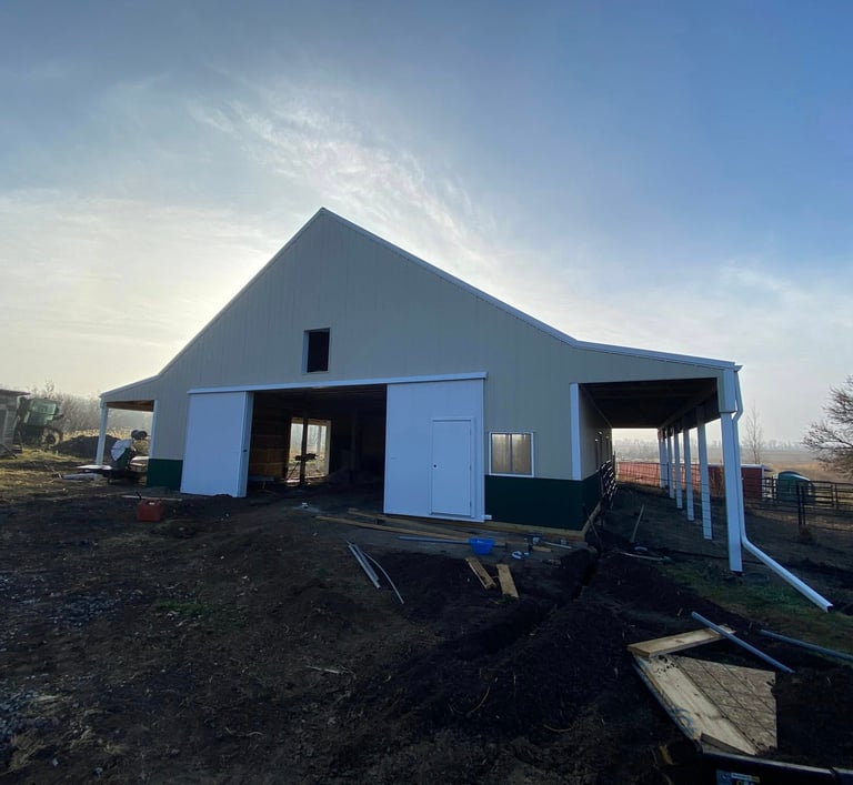 Here we constructed a standard Ag style Pole Barn with a small half monitor lean to on one side.
