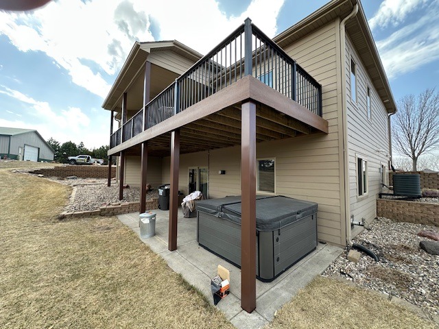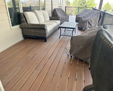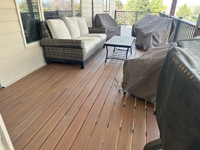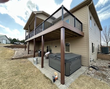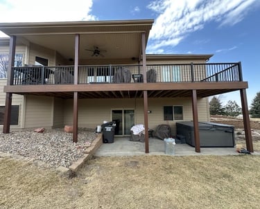 Deck reskin with armadillo composite decking, post wraps, and black aluminum rail. We took an old wooden deck and transformed it to this beautiful space.
