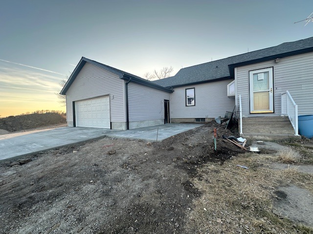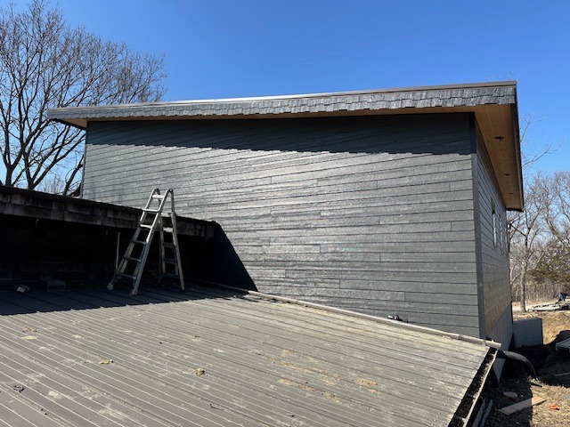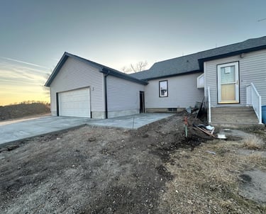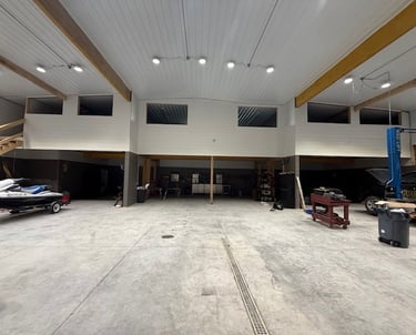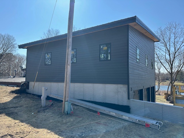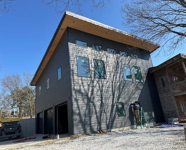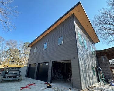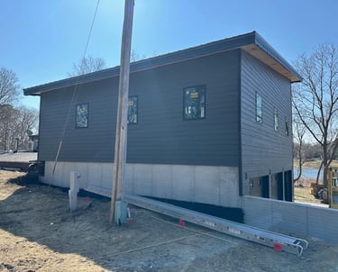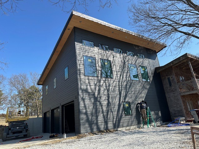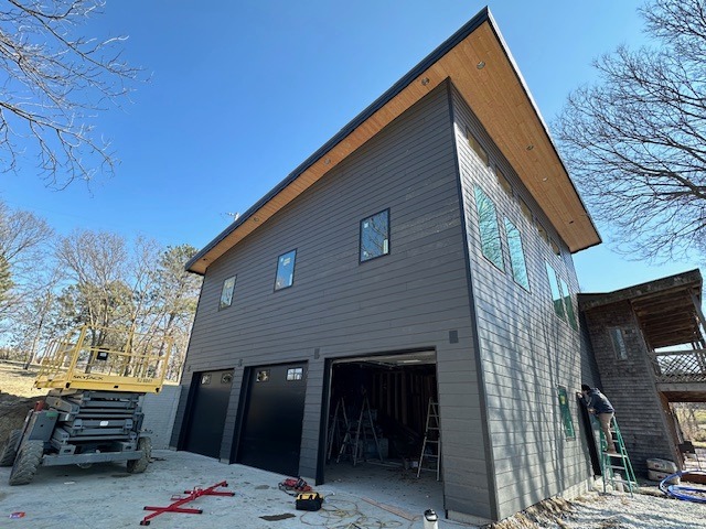 New custom garage addition with living quarters above. With Diamond Kote siding and giant Marvin windows this unique build makes a statement. Once again we were given a drawing and brought the customer's vision to life.